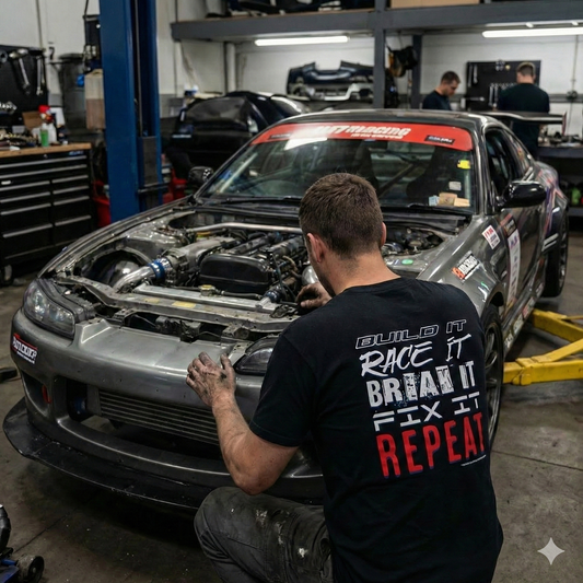 “Build / Race / Break / Fix / Repeat” Tee (black)